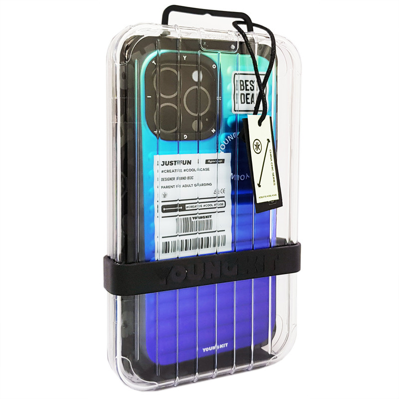 یکی از زیبا ترین و خاص ترین مدل های یانگ کیت، سطح هلوگرامی این قاب به زیبایی می درخشد، با نگاه کردن از زوایای مختلف طیف رنگی زیبایی را خواهید دید، این محصول از جنس TPU با کیفیت و مقاوم در برابر ضربه می باشد. برآمدگی های پشت این قاب جلوه زیبایی به آن بخشیده و انعکاس نور در آن بسیار زیبا می باشد. مطمئنا با دیدن رنگ گرم و زیبای آن تعجب خواهید کرد، لبه های برآمده محافظت بیشتری از صفحه نمایش در برابر هرگونه شکستگی و خط و خش ایجاد میکند. سطح روی لبه های قاب مات بوده تا از سر خوردن گوشی در دست جلوگیری کند، همچنین برآمدگی محافظ لنز آن دوربین گوشی را در ایمنی کامل قرار می دهد. طراحی دکمه ها آنچنان دقیق است که کار با گوشی را برای کاربر آسان کرده است و به گفته اکثر استفاده کنندگان نرم ترین دکمه های موجود در بین قاب های آیفون با برند های مختلف می باشد و به لطف برش دقیق دسترسی به پورتهای گوشی برای کاربر آسان می باشد. این محصول با کیفیت بالا و با استفاده از تکنولوژی IMD ( چاپ دولایه ) نه تنها در برابر خط و خش مقوام است بلکه در مقابل سایش هم مقوام می باشد و همچنین رنگ محصول ثابت می باشد. نکته دیگر اینکه قابلیت استفاده همزمان از قاب و شارژر های بی سیم وجود دارد. قابهای YOUNGKIT بواسطه طراحی جدید و بسته بندی خاص خود در شبکه های اجتماعی ترند شدند و بازار خوبی برای خود بوجود آوردند. بسته بندی قاب های یانگ کیت الهام گرفته شده از طراحی چمدان مسافرتی بوده و شدیدا برای هدیه دادن مناسب هستند و قطعا طراحی چشم نواز آن ها، عزیزانتان را شگفت زده میکند.