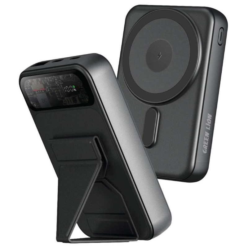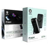 پاوربانک 10000 مگ سیف پراگ گرین لاین دارای ابعاد 105x70x18.5 میلی متر و وزن فقط 235 گرم در رنگ مشکی با کد GNPRMG10KPBBK با قابلیت استندشو تولید شده است که آن را به شارژر همراهی خوش دست و قابل حمل تبدیل کرده است. ظرفیت واقعی باتری این کالا حدود 6500mAh می باشد و جنس این محصول از PC و ABC است و با این پاوربانک سبک وزن می توان هم موبایل را با کابل شارژ کرد و هم موبایل های دارای قابلیت شارژ بی سیم را به صورت وایرلس شارژ کرد. این پاوربانک به آهنربای نئودیمیوم فوق العاده قوی مجهز شده است که به دستگاه شما محکم می چسبد و می تواند هم موبایل را با کابل شارژ کند و هم موبایل هایی که دارای قابلیت شارژ بی سیم هستند رو به صورت وایرلس شارژ کند، همین طور این دستگاه دارای ویژگی آهنربایی یا مگ سیف برای موبایل های آیفون 12 به بالا است و آن ها را در این حالت شارژ می کند. لازم به ذکر است که این محصول دارای درگاه Type-C می باشد و ولتاژ و شدت جریان ورودی آن که برای شارژ کردن این کالا مناسب است، 5V/3.0A بوده و این نکته مهم است که با شارژر مناسب آن را شارژ کنید که با این ورودی ها متناسب باشد. توان خروجی شارژ وایرلس آن تا حداکثر 15 وات و توان خروجی درگاه USB-A آن تا حداکثر 22.5 وات است.