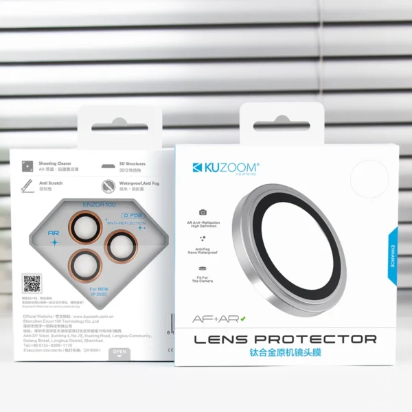 محافظ لنز KUZOOM مدل ENHANCE LENS با فناوری پیشرفته AF+AR، یک انتخاب ممتاز برای کاربران آیفون 17 پرو و پرومکس است که به کیفیت تصویر، زیبایی ظاهری و ایمنی دوربین اهمیت میدهند.