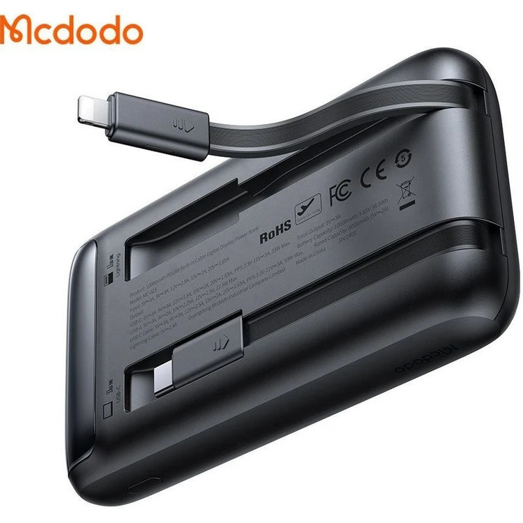 این پاور بانک دارای قابلیت شارژ سریع آیفون 14 و 15 و 16 می باشد. توان این پاوربانک 33 وات می باشد و دارای نمایشگر دیجیتالی باتری می باشد. از مزیت این پاوربانک متصل بودن دو کابل تایپ سی و لایتنینگ به خود پاوربانک جهت جلوگیری از حمل اقلام اضافه می باشد. این پاوربانک دارای خروجی USB و تایپ C نیز می باشد.