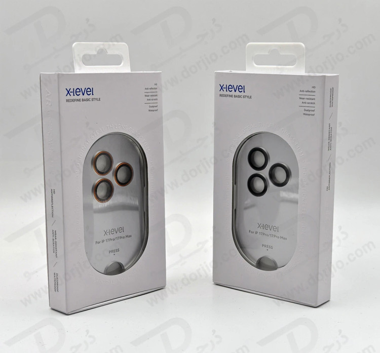 محافظ لنز رینگی آیفون 17 پرو مکس از 3 قسمت مشابه تشکیل شده که هرکدام روی یک لنز قرار می گیرند، هرکدام از این محافظ ها در قسمت اطراف از جنس فلز آلومینیومی باشد و در قسمت روی لنز دوربین، بصورت شیشه ای طراحی شده است. شیشه محافظ لنز فلزی رینگی X-Level آیفون 17 پرو مکس برند مدل Metal Camera Protector از جنس گلس های مقاوم شفاف بوده و از لنز دوربین گوشی شما در برابر خط و خش محافظت کند.