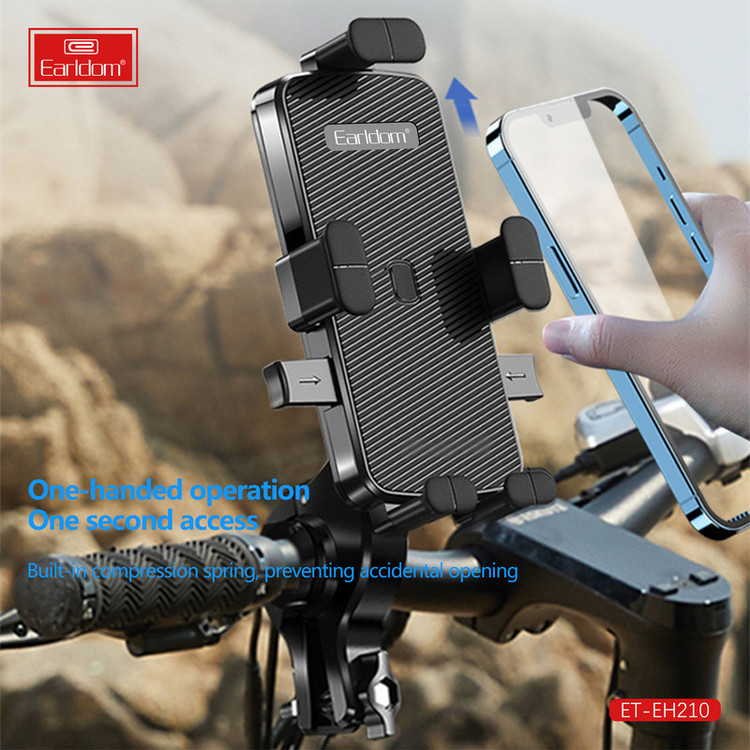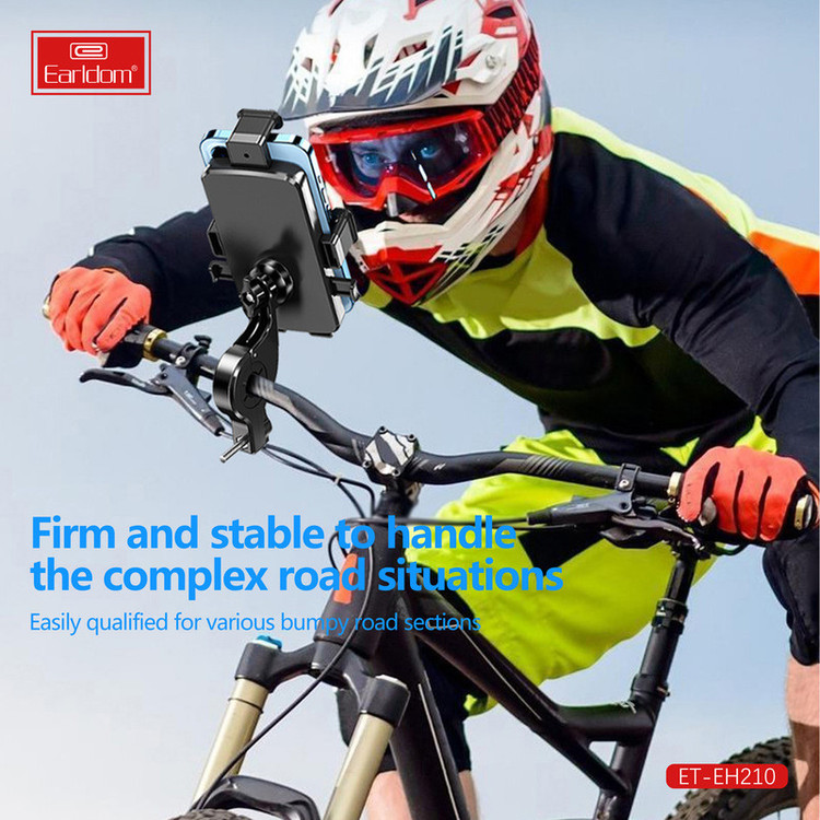 موتور و دوچرخه از جمله وسایل نقلیه ای است که برای گردش در طبیعت و مسیرهایی که امکان تردد با خودرو در آنها نیست، مورد استفاده قرار میگیرد. در بسیاری از مواقع، ما نیاز داریم که از مسیر یاب (جی پی اس) در هنگام دوچرخه سواری استفاده نماییم و یا دوست داریم از مسیر حرکت خود فیلمبرداری کنیم و حتی هنگام رکاب زدن، موسیقی دلخواه خود را گوش دهیم. پایه نگهدارنده گوشی مخصوص دوچرخه و موتور سیکلت ارلدام EH210 به ما این امکان را میدهد تا همه این موارد را تجربه کنیم و گوشی خود را در طول ماجراجویی های خود ایمن نگه داریم. پایه نگهدارنده گوشی همراه دوچرخه و موتور سیکلت EH210 یک محصول خارق العاده است که می تواند جان راکبین این وسایل نقلیه را از حوادث جاده ای ناشی از بی توجهی بابت استفاده از گوشی تا میزان قابل توجه ای کاهش دهد. این هولدر از مواد بسیار مقاوم و از جنس ABS ساخته شده است. در قسمت پایین شاهد یک گیره با ثبات که از روش قدیمی ولی قابل اطمینان پیچ و مهره با پوشش سیلیکونی قابل جدا شدن استفاده می کند که برای ایجاد مکانیزم فیکس پایه روی فرمان وسیله نقلیه استفاده شده است. در ادامه یک مفصل با قابلیت چرخش 360 درجه قرار گرفته که امکان استفاده از تلفن همراه در حالتهای افقی و عمودی را فراهم می نماید. در قسمت نگهدارنده پایه شاهد استفاده از ABS در سیلیکون هستیم که ساختاری مقاوم در برابر ضربه و حرارت را ایجاد کرده است. استفاده از یک اتصال 4 نقطه ای که قابلیت پشتیبانی از تلفن های سایز 4.7 تا 7 اینچ را دارا می باشد این اطمینان را به راننده می دهد که گجت خود را در هیچ دست اندازی از دست نخواهد داد.