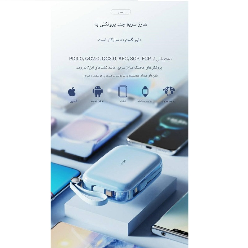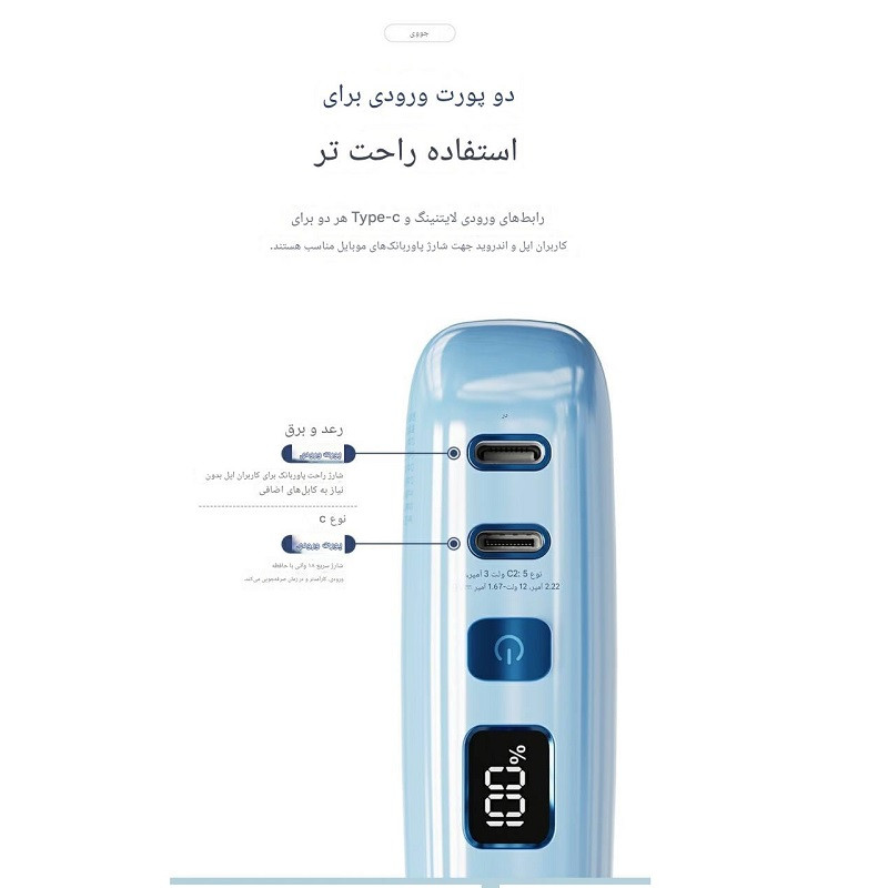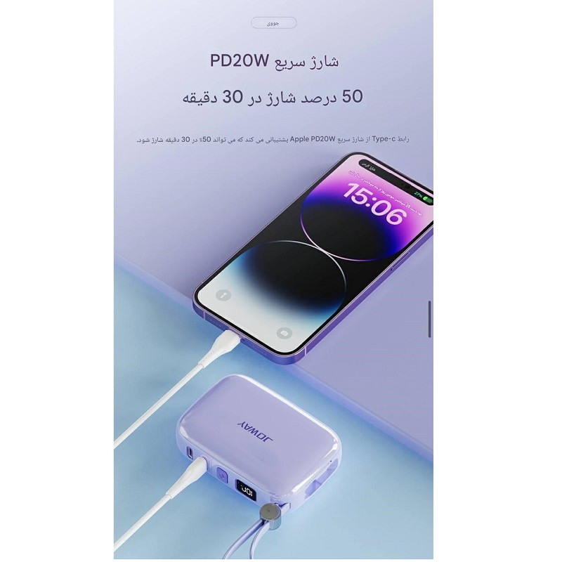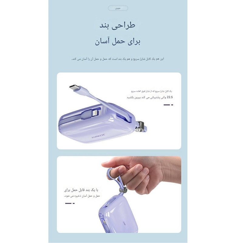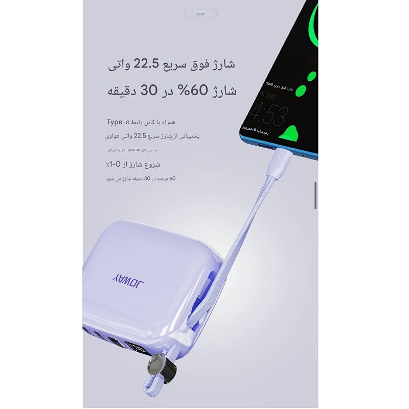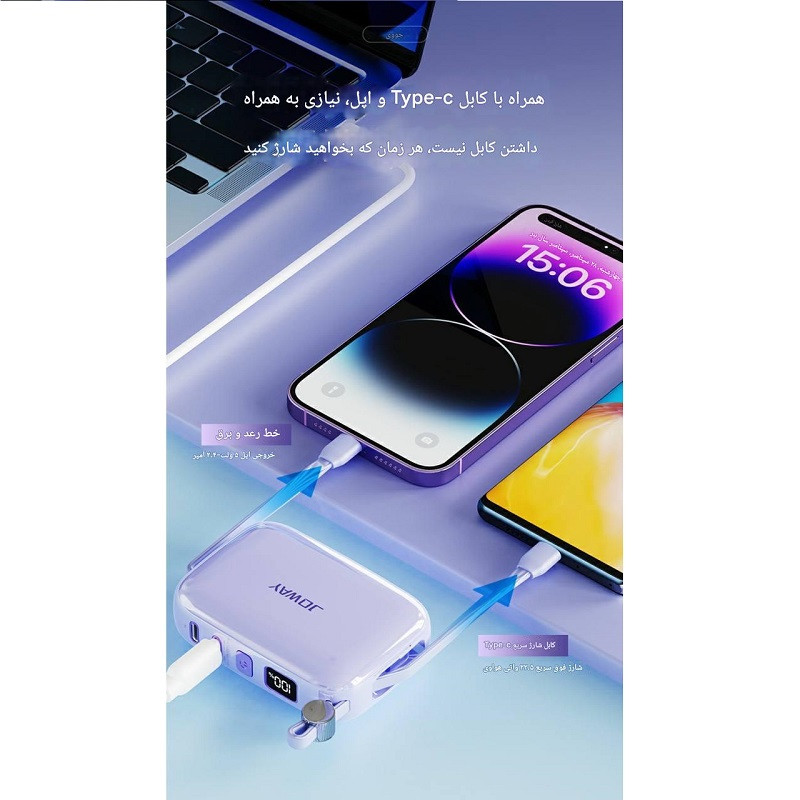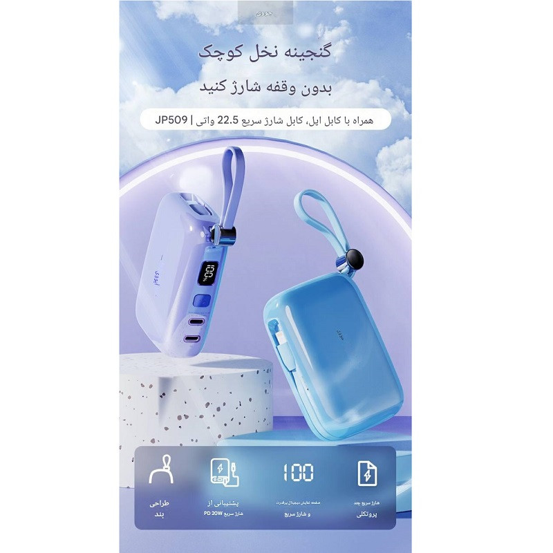 اگر به دنبال یک پاوربانک جمعوجور، سبک و در عین حال قدرتمند هستید، مدل JP509 از برند Joway گزینهای ایدهآل برای شماست. این پاوربانک با طراحی هوشمندانه، مجهز به دو کابل داخلی تایپسی و لایتنینگ است که نه تنها امکان شارژ انواع گوشیها را فراهم میکند، بلکه با استفاده از کابل تایپسی به عنوان دستگیره حمل، راحتی بیشتری برای جابجایی ایجاد میکند.